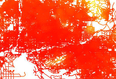 Open Street Maps layers are loaded including roadways, sidewalks, and transit to form the transportation networks. These networks are exploded when joined with building layers to capture precise indvidual routes. Network links are then joined with environmental hazards to produce a time-based network exposure assignment.